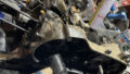 そのままねじを回そうとするとエンジンと一緒に回転してしまうので、インパクトを使用して緩めていきます。ねじを外したらギアを手前に引っ張れば外れます。