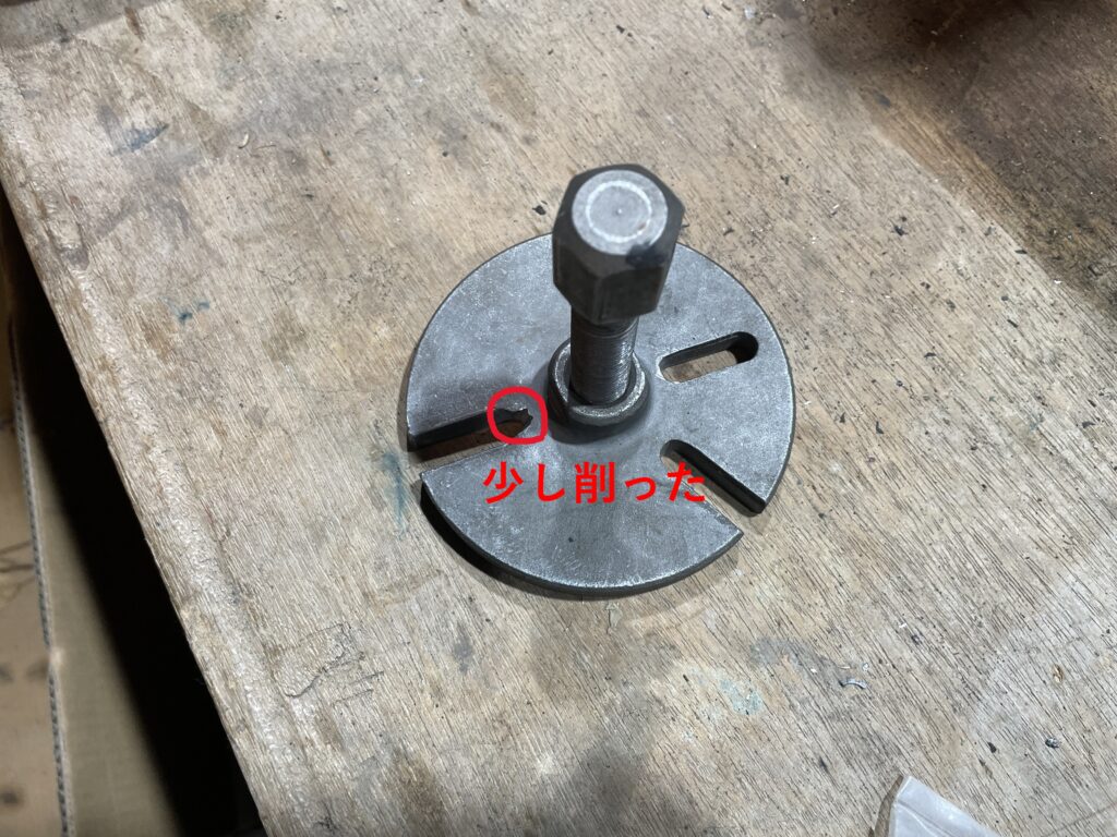 フライホイールプーラの取り付けは、市販のM6のボルトとフライホイールに空いているねじ山を使用しました。