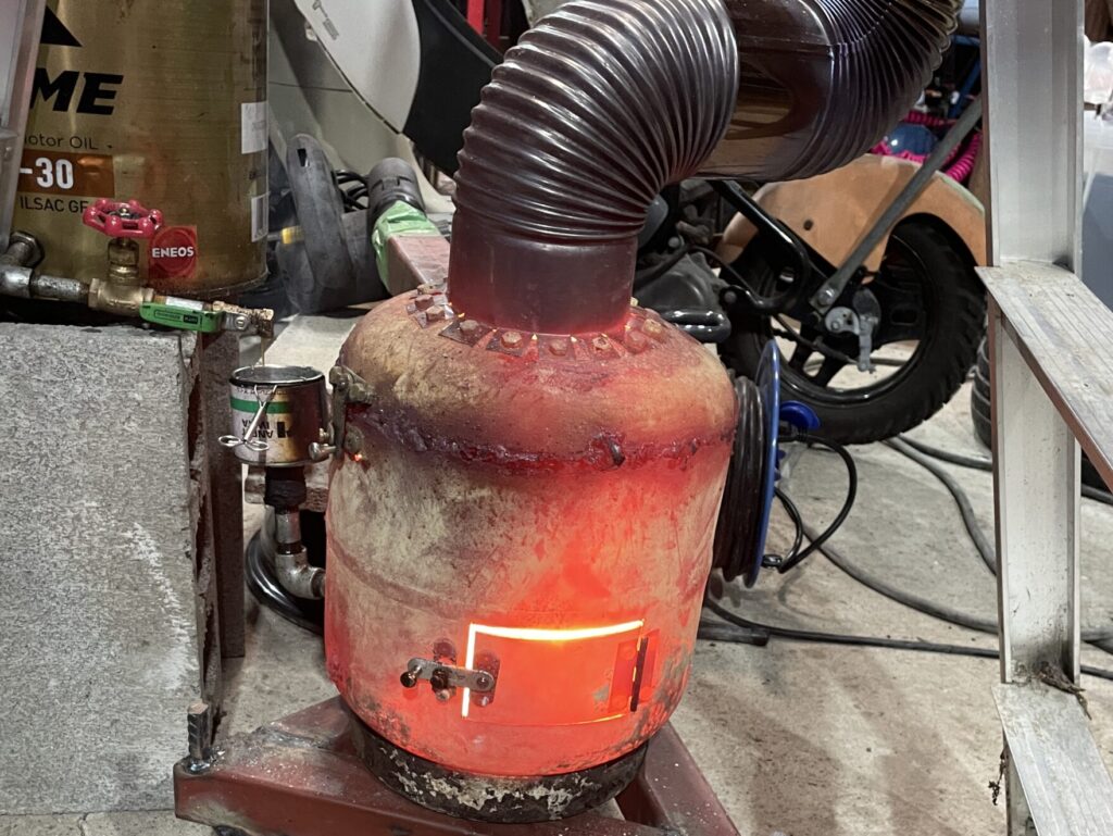 最も現実的で実績のある使用方法です。私の使用している環境では、8時間燃焼してペール缶を1缶ほど廃油を消費できます。小さなストーブですがガレージの暖房として十分な発熱量があるので冬季に冷え込む時期はおすすめです。利用する際は、換気や周辺に可燃物を置かない注意が必要です。これを機にDIYにチャレンジしてみるのはいかがでしょうか?